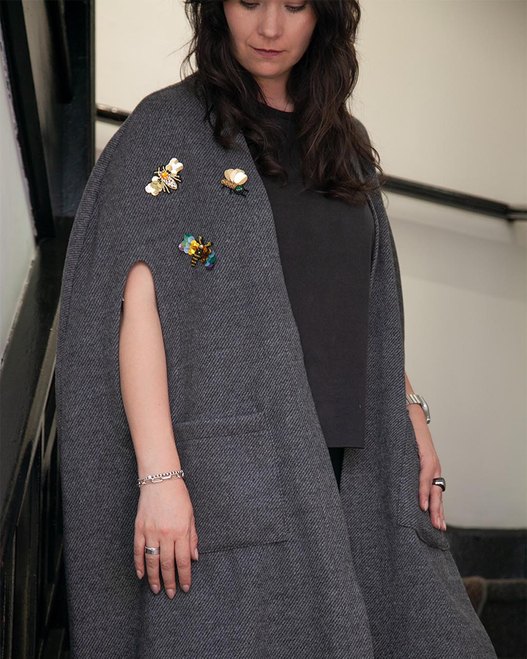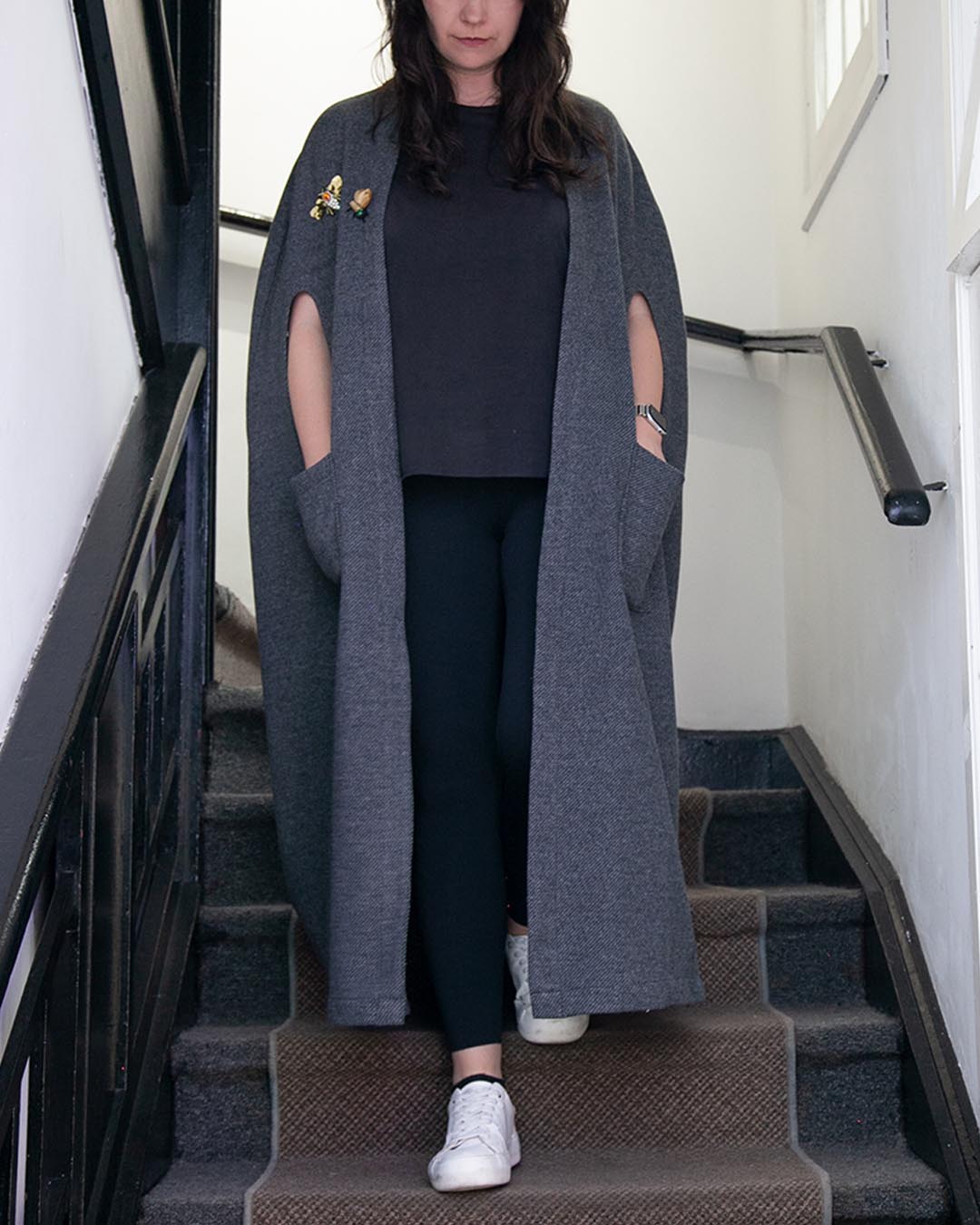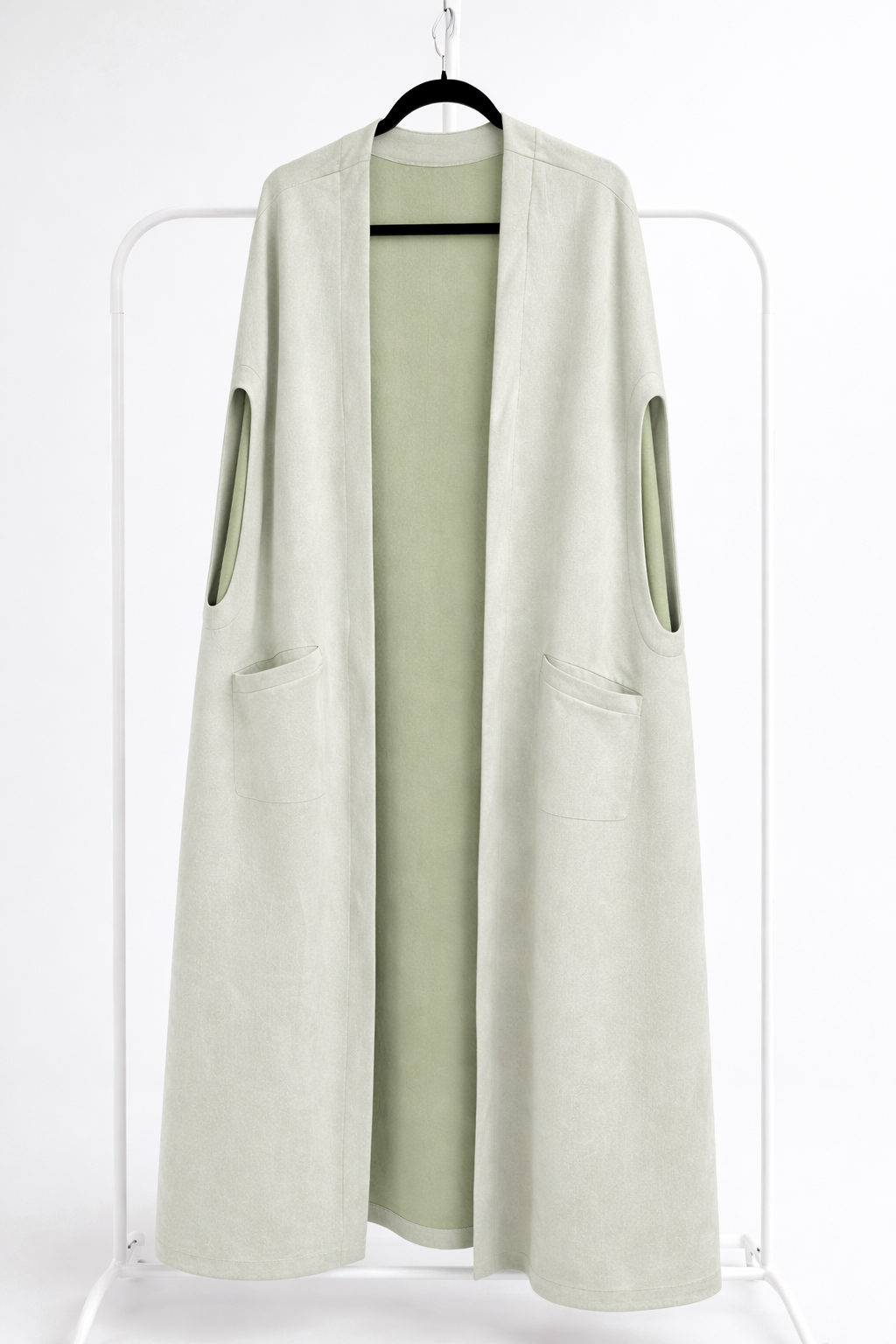 Silueta: Corte largo y envolvente con caída natural desde los hombros.